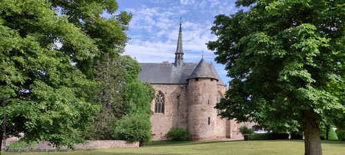 Une autre vue du château avec la chapelle au premier plan :